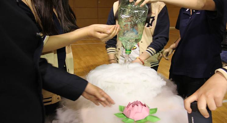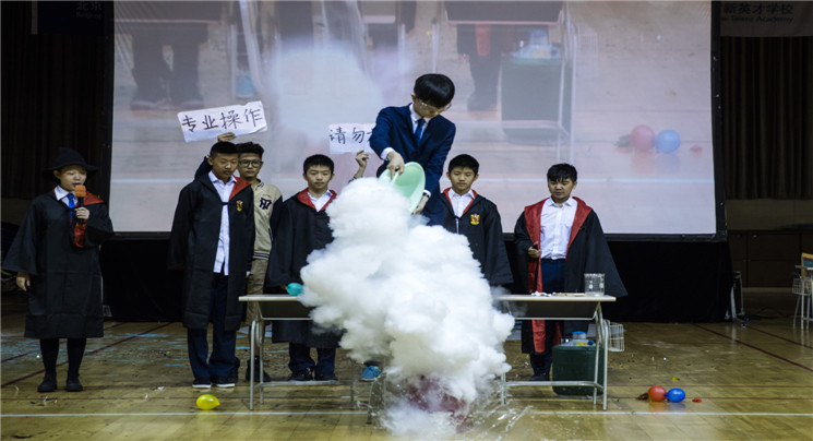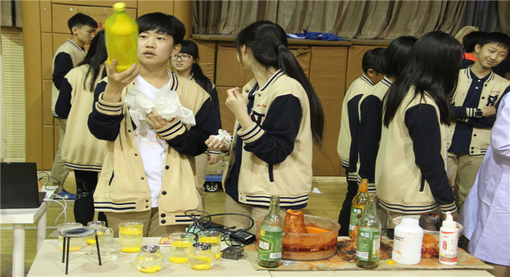 8年(1)班的周子萱、王子豪、田大可等同学带来的《奇妙的液体》
