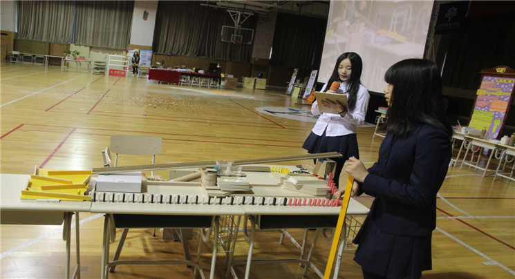 11年(4)班郭雨涵、刑朴元等同学带来的《鲁布・戈德堡机械》